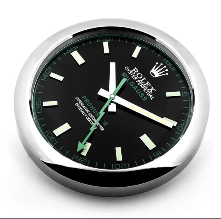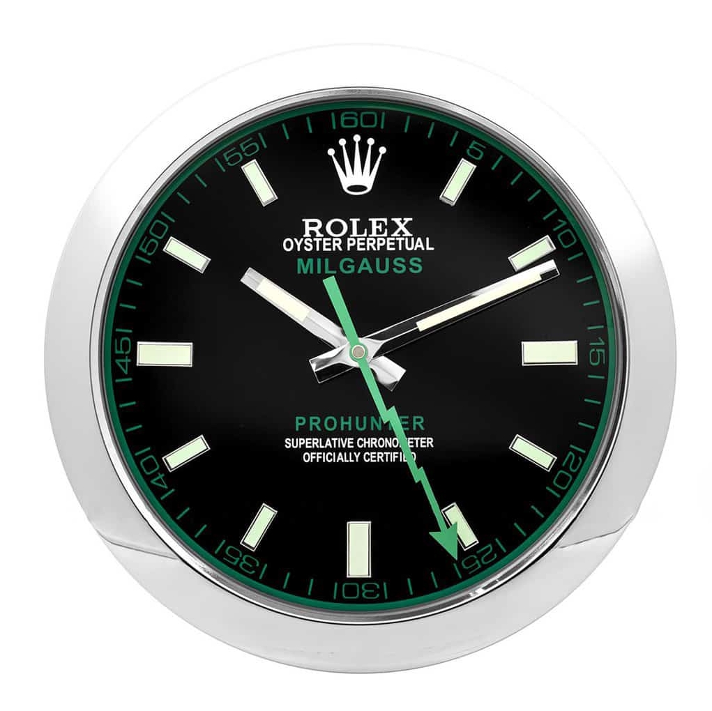 Milgauss Style Wall Clock Silver & Green | Luxury Rolex-Inspired Wall Clock